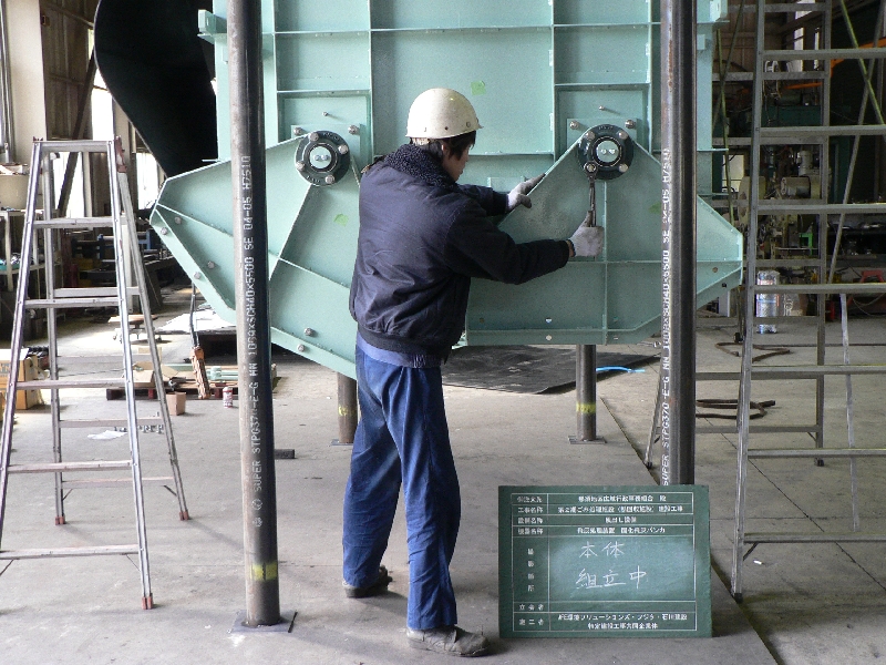 弊社では産業機械、及び環境プラントの、大型 製缶板金品の製作・機械加工・塗装・組立・試運転を主な業務としております。